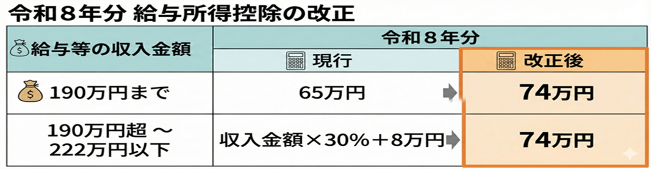 令和8年分の給与所得控除の最低保証額は下図のようになる予定です。