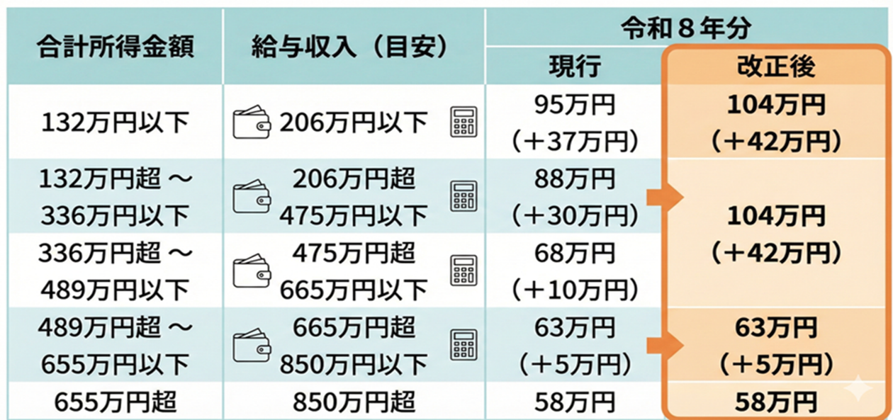 令和8年分の基礎控除は下図のようになる予定です。